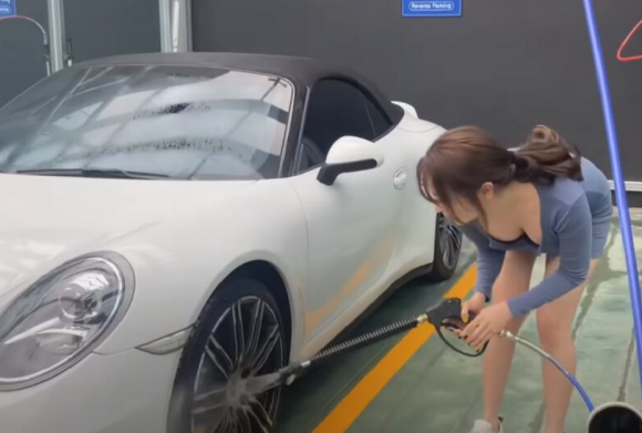 大奶妹自助洗車好敢露!影片已經太香:特寫懂抓喔